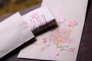 - 桜の花&花びら型の切り紙をお入れいたします。