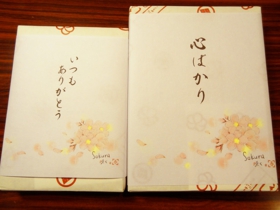 - 商品を取り出すと、桜の花びらがはらり。