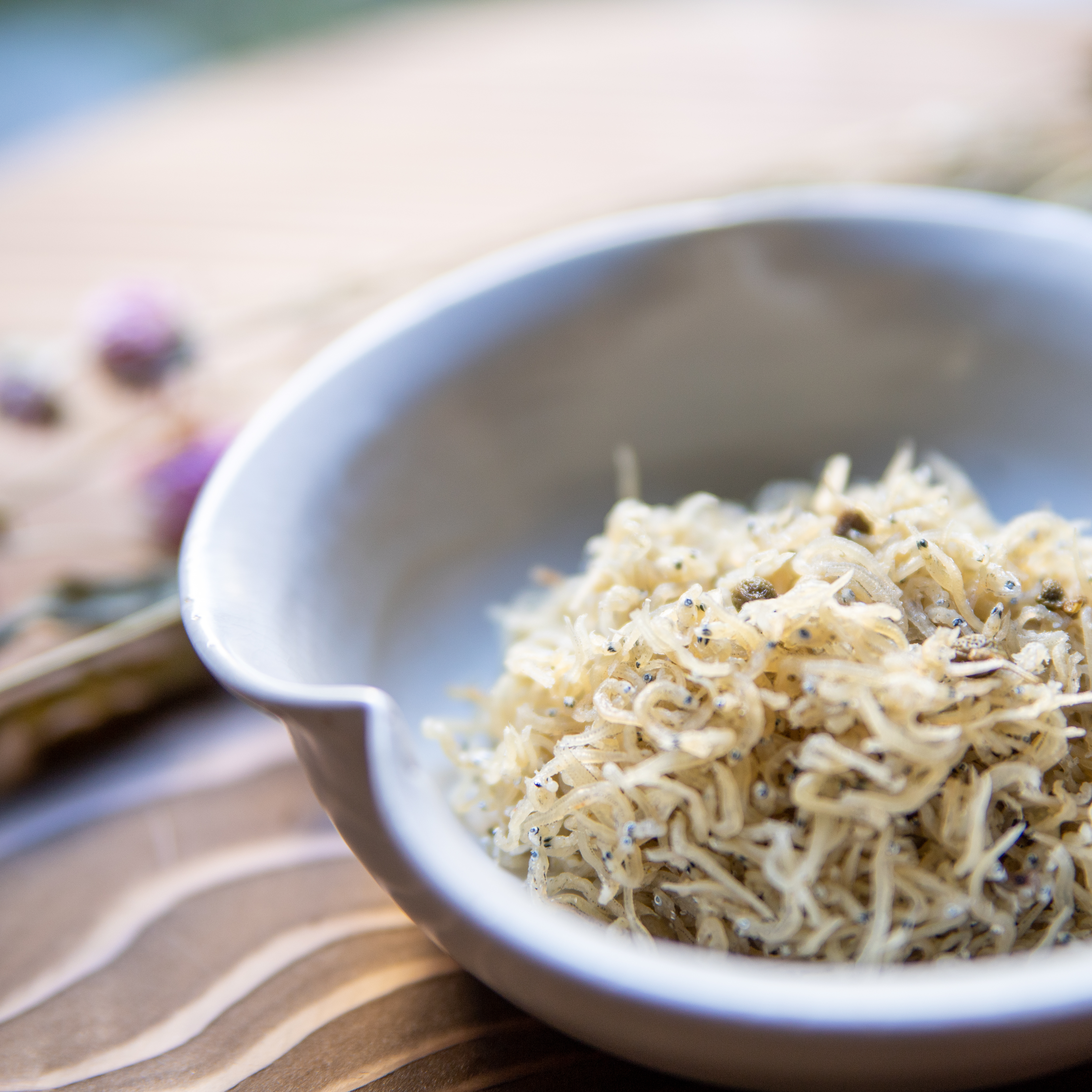 保存料を一切使わずに、小ぶりのちりめんじゃこと山椒を一釜一釜丁寧に炊き上げています。